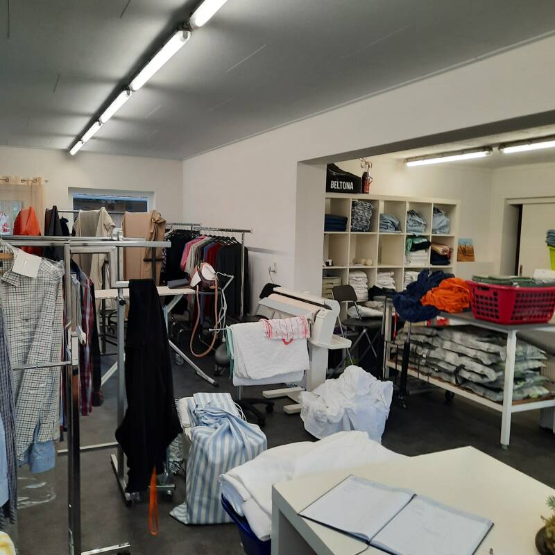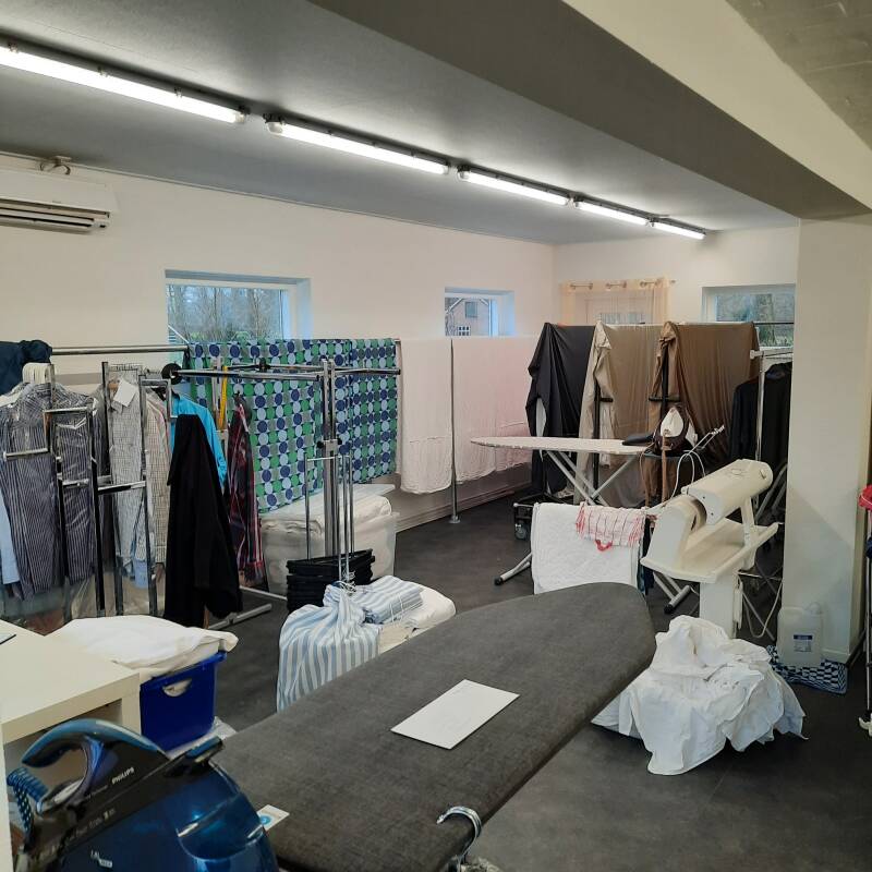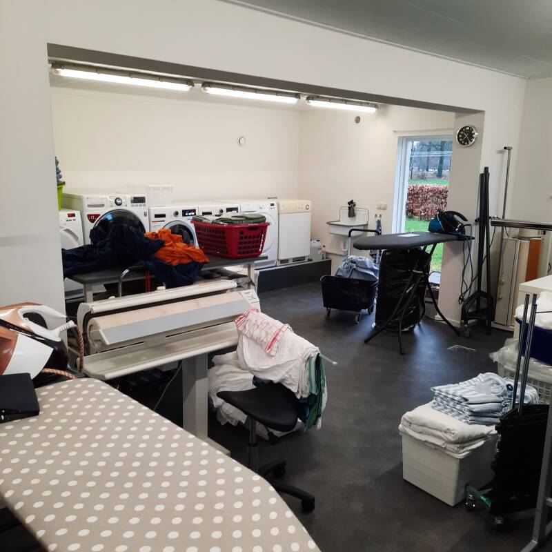 We kunnen volop draaien in de geweldige, vernieuwde Strijkservice. De machines op hoogte, de droogruimte vergroot en heerlijk werken in de fantastische Strijkservice.